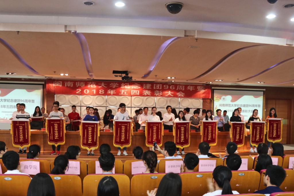 為深入貫徹落實習近平新時代中國特色社會主義思想和黨的十九大精神,展示我校學生工作、共青團工作取得的豐碩成果,5月3日下午,我校在逸夫圖書館五樓報告廳舉行紀念建團96周年暨2018年五四表彰大會。校黨委書記吳彬鏹、副書記鐘發亮出席大會,相關部處領導、各學院黨委領導、團委負責人、輔導員及受表彰的先進集體和個人參加會議。大會由校團委書記鄭炎山主持。