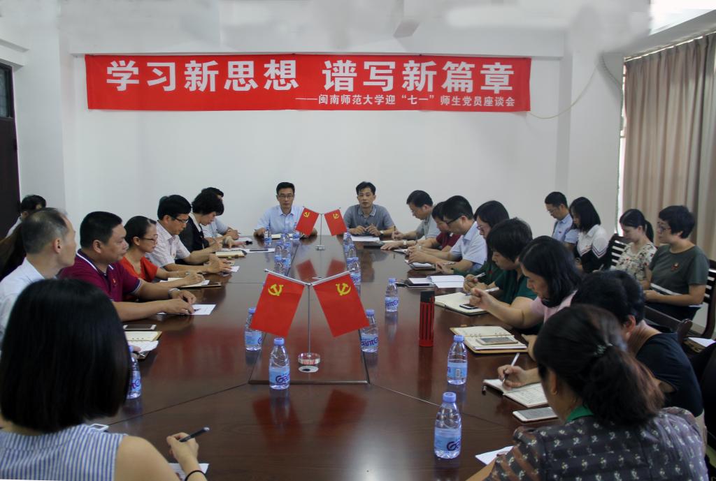 為迎接中國共產黨建黨97周年,進一步深化學習貫徹習近平新時代中國特色社會主義思想和黨的十九大精神,6月27日下午,我校召開學習新思想譜寫新篇章迎“七一”師生黨員座談會。校黨委書記吳彬鏹、副書記鐘發亮,校紀委書記黃來淵出席會議,學校部分二級學院黨委書記、專職組織員,“雙帶頭人”教師黨支部書記、優秀教師黨員代表及學生黨員代表,組織部黨支部全體成員參加座談會。座談會由校黨委副書記鐘發亮主持。