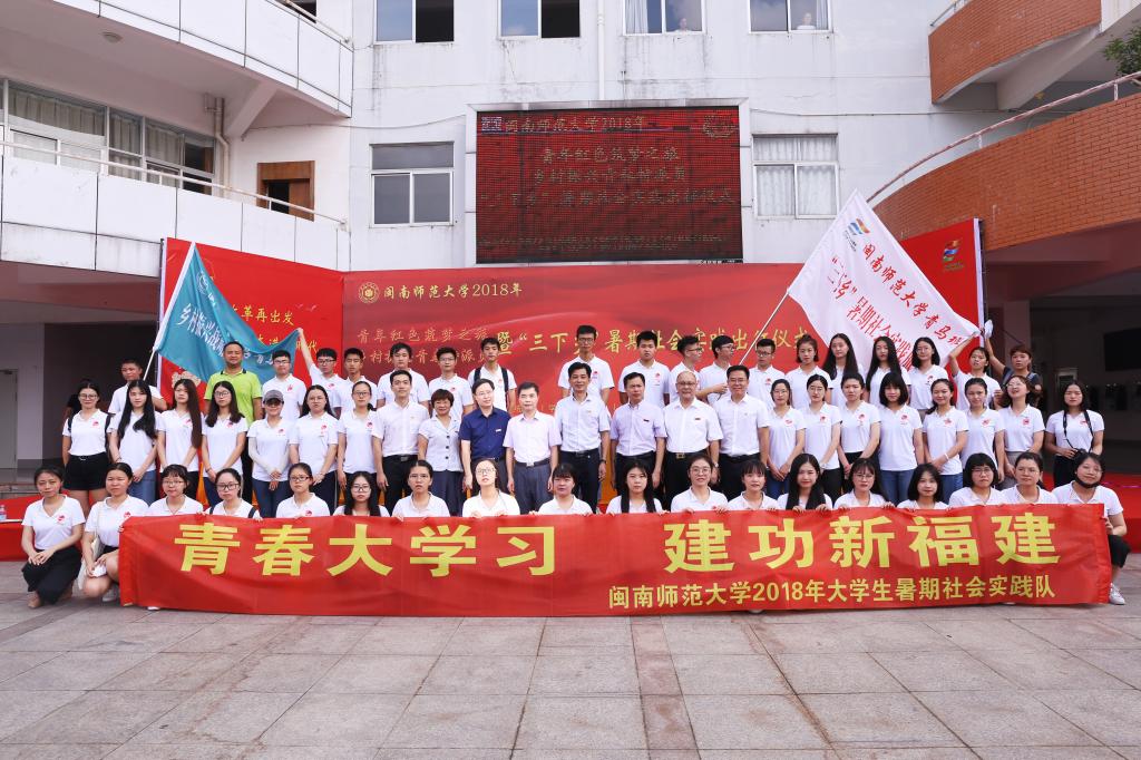 校黨委副書記鐘發(fā)亮在出征儀式上作動員講話。他指出,大學(xué)生暑期“三下鄉(xiāng)”社會實(shí)踐是學(xué)校實(shí)踐育人的重要載體,是引導(dǎo)青年學(xué)生深入學(xué)習(xí)貫徹習(xí)近平新時代中國特色社會主義思想和黨的十九大精神、積極培育和踐行社會主義核心價值觀的重要途徑,更是青年學(xué)子受教育、長才干、作貢獻(xiàn)的寶貴機(jī)會,希望同學(xué)們堅定理想,在實(shí)踐磨礪中熔鑄信仰;學(xué)用相長,在實(shí)踐觀察中讀懂國情;腳踏實(shí)地,在實(shí)踐鍛煉中增長才干;踐行使命,在服務(wù)社會中樹立形象,在基層的廣闊天地里唱響新時代的青春之歌,在建設(shè)新閩師、建功新福建、實(shí)現(xiàn)中國夢的偉大實(shí)踐中,創(chuàng)造出無愧于時代、無愧于青春的嶄新業(yè)績。
