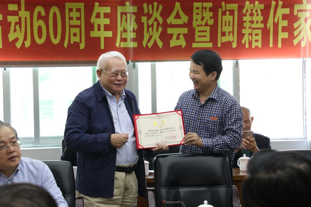 副校長張龍海為何鎮邦頒發閩籍作家學者研究中心名譽主任聘書