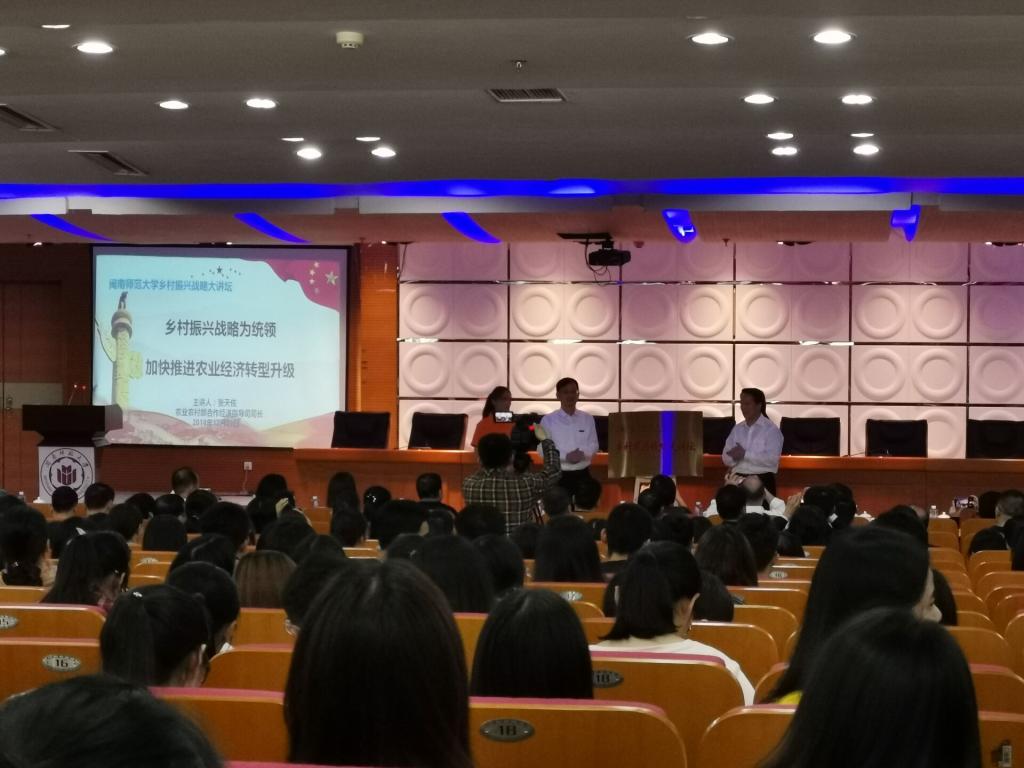 揭牌儀式結(jié)束后,張?zhí)熳糇鲱}為《以鄉(xiāng)村振興戰(zhàn)略為統(tǒng)領(lǐng),加快推進(jìn)農(nóng)業(yè)經(jīng)濟(jì)轉(zhuǎn)型升級(jí)》的專題報(bào)告。他詳細(xì)闡述了國家為什么要實(shí)施鄉(xiāng)村振興戰(zhàn)略、中央對(duì)實(shí)施鄉(xiāng)村振興戰(zhàn)略的總體部署、我國農(nóng)業(yè)農(nóng)村經(jīng)濟(jì)發(fā)展面臨的形勢以及如何加快推進(jìn)農(nóng)業(yè)農(nóng)村經(jīng)濟(jì)轉(zhuǎn)型。報(bào)告政策性強(qiáng),信息量大,對(duì)我校持續(xù)開展鄉(xiāng)村振興戰(zhàn)略研究和服務(wù)富美漳州建設(shè)具有重要的啟發(fā)。
