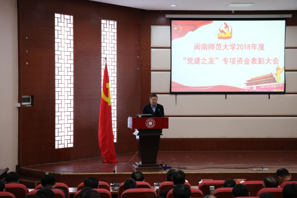 1月16日下午,我校在東區(qū)報告廳召開2018年度“黨建之友”專項資金表彰大會。校黨委書記吳彬鏹,黨委常委、紀(jì)委書記黃來淵,漳州市金龍客車有限公司董事長,漳州市陳金才慈善基金會秘書長張致平、副秘書長吳榮光出席表彰大會。校黨委委員、紀(jì)委委員以及各二級黨組織獲獎?wù)摺熒砑包h務(wù)工作者150余人參加活動。表彰大會由校黨委組織部部長陳超主持。