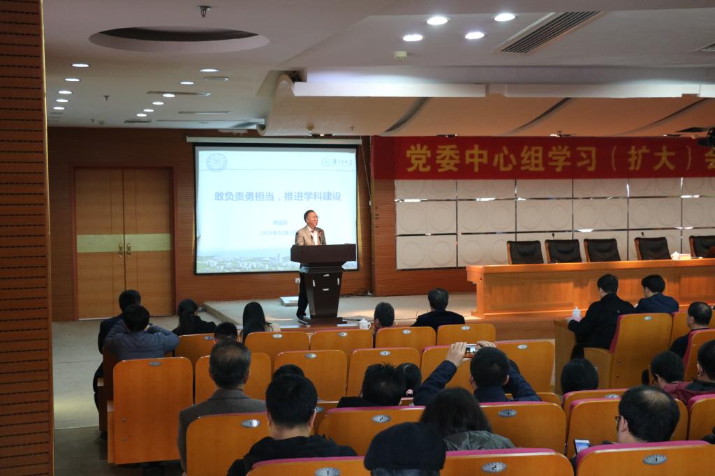 為進(jìn)一步深入貫徹習(xí)近平新時(shí)代中國特色社會(huì)主義思想和黨的十九大精神,全面貫徹落實(shí)全國教育大會(huì)精神和新時(shí)代全國高等學(xué)校本科教育工作會(huì)議精神,2月22日上午,校黨委在逸夫圖書館五樓報(bào)告廳召開理論學(xué)習(xí)中心組(擴(kuò)大)學(xué)習(xí)會(huì)。全體在家校領(lǐng)導(dǎo),全校副科級(jí)以上干部,二級(jí)學(xué)院教授、院長助理、系主任、教研室主任,民主黨派、無黨派人士及統(tǒng)戰(zhàn)團(tuán)體負(fù)責(zé)人,各級(jí)人大代表、政協(xié)委員等近400人參加會(huì)議。會(huì)議由校黨委常委、副校長張龍海主持。