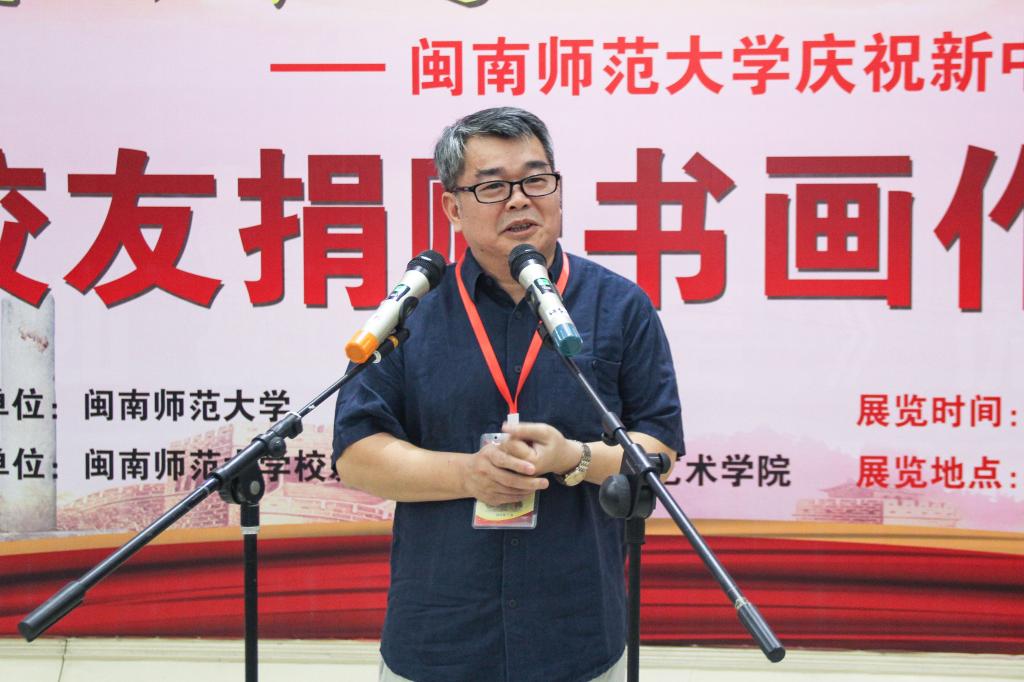 捐贈書畫作品校友代表、中國書法家協會理事、福建省書法家協會副主席李木教在開幕式上致辭。李木教回憶了當年在母校學習的美好時光,感慨母校六十一年來辦學之路的艱辛和不易,自豪母校近年來取得的辦學發展新成就。他表示,校友們將繼續發揚母校的優良傳統,銘記母校校訓,創作更多佳作,用實際行動回報恩師的哺育和母校的培養。
