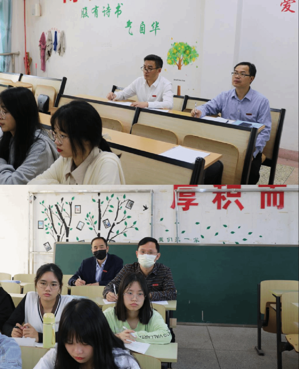 校黨委書記吳彬鏹,校長李順興,校黨委副書記鐘發亮、肖慶偉,校黨委常委、副校長張龍海分別聽取了《毛澤東思想和中國特色社會主義理論體系概論》《思想道德修養與法律基礎》《中國近現代史綱要》《馬克思主義基本原理概論》等思政課,并與思政課教師進行交流。聽課結束后,吳彬鏹、李順興等校領導還和學生親切交流,再次強調了思政課的重要性,勉勵同學們認真學好思政課,將自己的專業知識和思政課內容相結合,把愛國情、強國志、報國行自覺融入堅持和發展中國特色社會主義事業、建設社會主義現代化強國、實現中華民族偉大復興的奮斗之中。