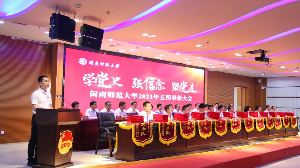 在全校深入開展黨史學習教育,熱烈慶祝中國共產黨成立100周年之際,為進一步引導和鼓勵我校團員青年弘揚五四精神,堅定聽黨話、跟黨走的人生追求,5月6日下午,我校在逸夫圖書館五樓報告廳舉行“學黨史 強信念 跟黨走”2021年五四表彰大會。校黨委書記吳彬鏹,黨委副書記、校長李順興,黨委副書記鐘發亮,黨委常委、副校長張龍海出席大會,學校相關部門負責人,各學院黨委書記、團委負責人,受表彰的先進集體和個人代表以及新入團團員代表在主會場參加會議,各學院黨委副書記、輔導員和青年學生團員代表在學院分會場參加會議。會議由校團委副書記蔡斌主持。
