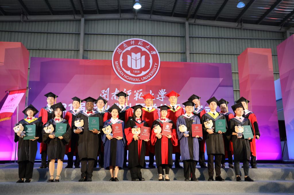 校長李順興在畢業(yè)典禮上致辭。李順興代表學(xué)校向圓滿完成學(xué)業(yè)的學(xué)子表示祝賀,感謝他們將最美好的青春與閩南師大聯(lián)系在一起,并對即將踏上新征程的畢業(yè)生提出殷殷囑托。他勉勵畢業(yè)生們在踐行家國使命上,要有舍我其誰、當(dāng)仁不讓的擔(dān)當(dāng),時刻擺正自己的位置,感受肩上責(zé)任的重量,在報效家國的人生路途上,散發(fā)閩南師范大學(xué)“水仙花牌”優(yōu)秀青年的芬芳;在強化自身塑造上,要有我心光明、觀照未來的胸懷,要不斷充實自己,不懈追求更新,建立終身學(xué)習(xí)、終身成長機制,保持對自然的畏懼之心和對生命來之不易的敬重;在堅持夢想追求上,要有心之所向、素履所往的執(zhí)著,朝著篤定的目標(biāo)持之以恒、不懈奮斗,努力讓未來的自己無悔。