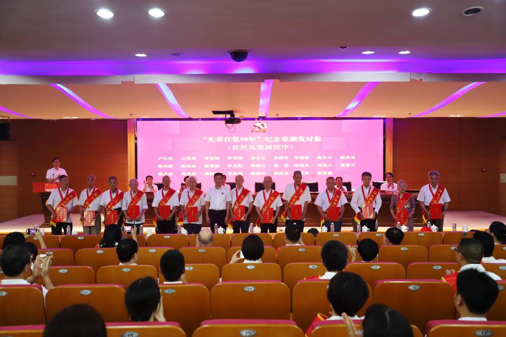 校黨委書記吳彬鏹為老黨員同志代表頒發(fā)“光榮在黨50年”紀念章