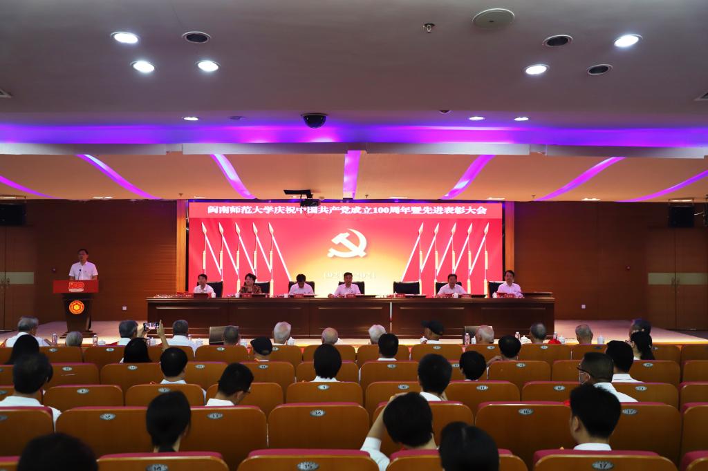 7月1日下午,我校在逸夫圖書館五樓報告廳隆重舉行慶祝中國共產(chǎn)黨成立100周年暨先進表彰大會。校領導吳彬鏹、李順興、鐘發(fā)亮、何紹福、蔣一婷、張龍海、戴??党鱿髸?。會議由校黨委副書記、校長李順興主持。