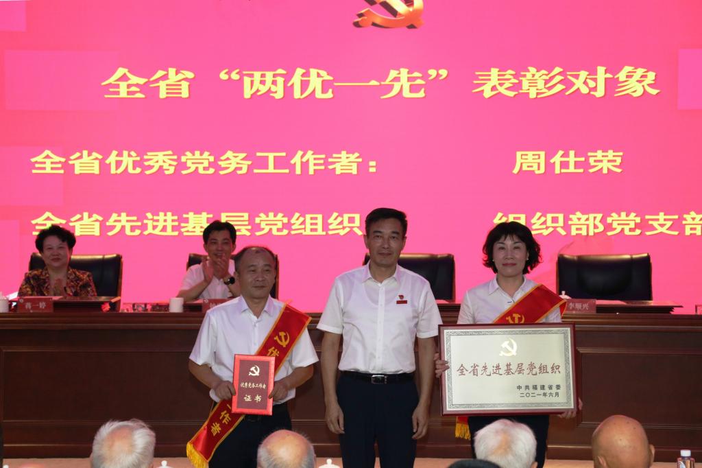 校黨委書記吳彬鏹為全省“兩優(yōu)一先”表彰對象頒發(fā)獎牌、證書
