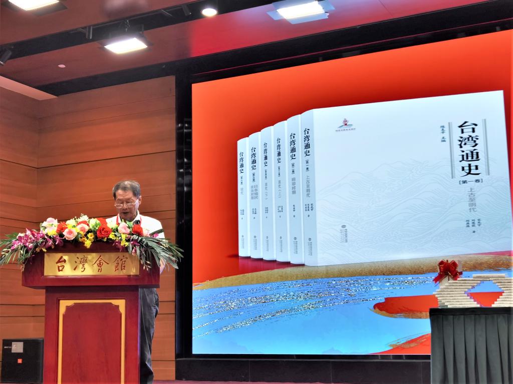 楊毅周在致辭中指出,《臺(tái)灣通史》由兩岸學(xué)者通力合作寫成,生動(dòng)而全面地展現(xiàn)了寶島臺(tái)灣從遠(yuǎn)古到現(xiàn)代的發(fā)展歷程,是目前祖國(guó)大陸出版的第一部《臺(tái)灣通史》。本部叢書編寫的過(guò)程是“兩岸一家親”的真實(shí)寫照,體現(xiàn)了兩岸學(xué)者的歷史擔(dān)當(dāng),為推動(dòng)海峽兩岸史學(xué)界“共享史料、共寫史書”邁出了堅(jiān)實(shí)的一步。這部《臺(tái)灣通史》的編撰出版,必將有利于海峽兩岸同胞正確認(rèn)識(shí)臺(tái)灣史,為加深兩岸的相互理解、增進(jìn)互信認(rèn)同注入新的活力。希望兩岸雙方繼續(xù)推動(dòng)“共享史料、共寫史書”,加強(qiáng)臺(tái)灣史、兩岸史的研究、整理、教育與傳播,不斷鞏固兩岸同胞共同的歷史記憶,促進(jìn)同胞心靈契合,增進(jìn)和平統(tǒng)一認(rèn)同,凝聚起兩岸同胞致力于祖國(guó)統(tǒng)一和中華民族偉大復(fù)興的共同意愿。