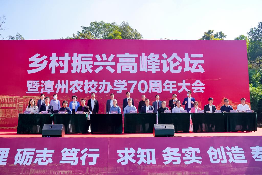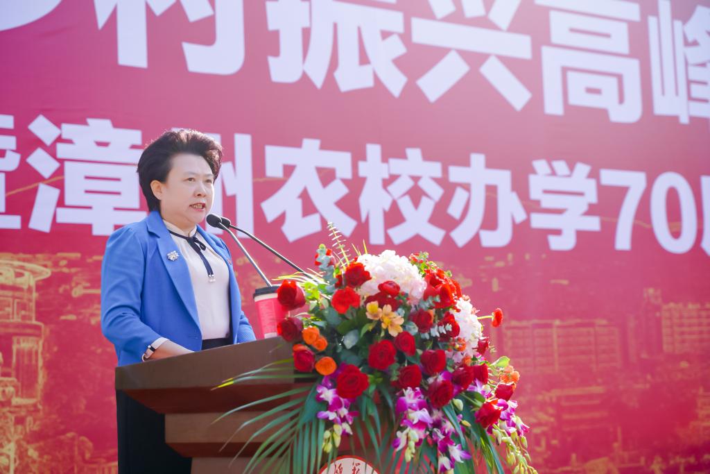 文脈綿延傳薪火,融合發(fā)展譜新篇。12月12日上午,鄉(xiāng)村振興高峰論壇暨漳州農(nóng)校辦學(xué)70周年大會(huì)在我校圓山校區(qū)舉行。校黨委書(shū)記吳彬鏹,黨委副書(shū)記、校長(zhǎng)李順興,黨委常委、副校長(zhǎng)蔣一婷等校領(lǐng)導(dǎo),漳州市政協(xié)原副主席、原漳州農(nóng)校校長(zhǎng)黃幼雄及盧長(zhǎng)河、何小青、郭天成等原漳州農(nóng)校領(lǐng)導(dǎo),福建省海洋與漁業(yè)局黨組成員、副局長(zhǎng)邱章泉,漳州市人大常委會(huì)黨組成員林俊德,漳州市工信局二級(jí)巡視員蘇斌鋼等原漳州農(nóng)校校友代表出席大會(huì)。漳州市直及各縣(市、區(qū))有關(guān)部門(mén)領(lǐng)導(dǎo)、嘉賓,我校(含原漳州農(nóng)校)各地校友代表、在校師生代表等參加大會(huì)。大會(huì)由蔣一婷主持。