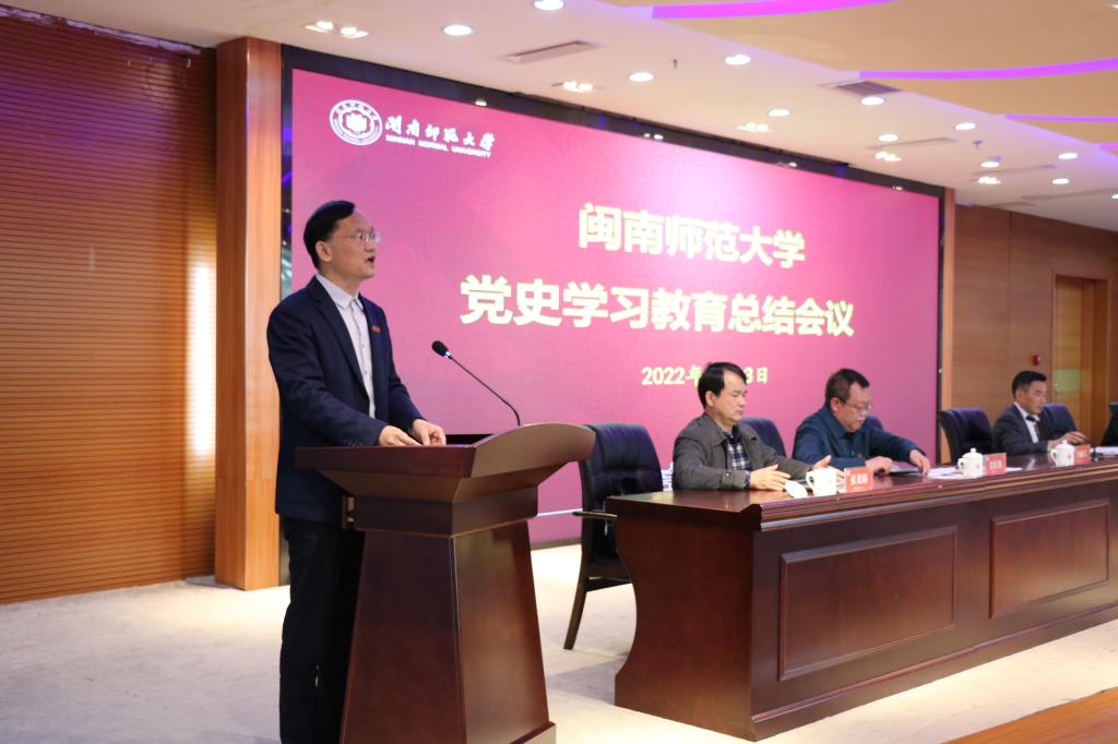 1月13日下午,我校在逸夫圖書館五樓報告廳召開黨史學習教育總結會議。省教育系統黨史學習教育巡回指導三組組長賴虹凱,指導組成員王志煌、張春、胡嘯塵到會指導。校黨委書記、黨史學習教育領導小組組長吳彬鏹作黨史學習教育總結報告,校黨委副書記、校長、黨史學習教育領導小組副組長李順興主持會議。校領導鐘發亮、肖慶偉、何紹福、張龍海、戴??党鱿瘯h。
