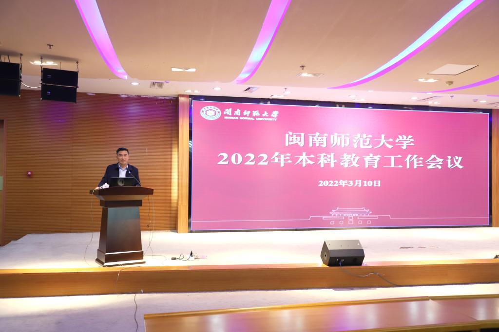 3月10日下午,我校在逸夫圖書館五樓報告廳召開2022年本科教育工作會議,落實學校“提質增效年”行動要求,深化“以本為本”“四個回歸”,盤點總結成績、分析形勢任務、謀劃未來發展,奮力開啟建設一流本科教育新征程。閩南師范大學黨委書記吳彬鏹,黨委副書記、校長李順興,黨委常委、副校長張龍海出席會議。會議由吳彬鏹主持。