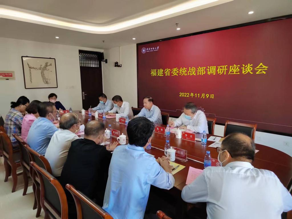 座談會上,肖慶偉從我校統戰工作基本情況、主要工作成效、特色亮點等三個方面介紹了學校統戰工作相關情況。肖慶偉指出,近年來,校黨委高度重視統戰工作,充分發揮學校對臺區位優勢和辦學特色優勢,緊扣凝聚人心這個根本,注重發揮統戰智庫專家作用,在涉臺研究、咨政服務、文化交流、人才培養等方面主動作為,為推動兩岸融合發展作出積極貢獻。