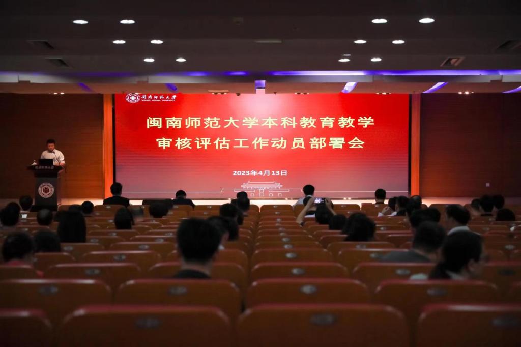 4月13日下午,我校在逸夫圖書館五樓報告廳召開本科教育教學審核評估工作動員部署會。校黨委書記吳彬鏹,黨委副書記、校長李順興,校領導林致遠、張龍海、戴??党鱿?,全校中層干部,各學院教學秘書、教務員,教務處全體人員參加。會議由教務處處長汪慶祥主持。