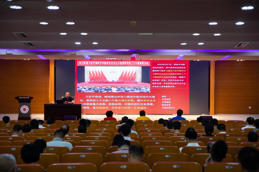 華僑大學馬克思主義學院博士生導師林懷藝教授應邀作題為《以中國式現代化全面推進中華民族偉大復興——學習貫徹黨的二十大精神》的專題輔導報告。林教授圍繞學習貫徹黨的二十大精神,深入闡釋了中國式現代化的領導核心、根本遵循、共性和中國特色、本質要求、重大原則、文化底蘊、踐行路徑及美好愿景。