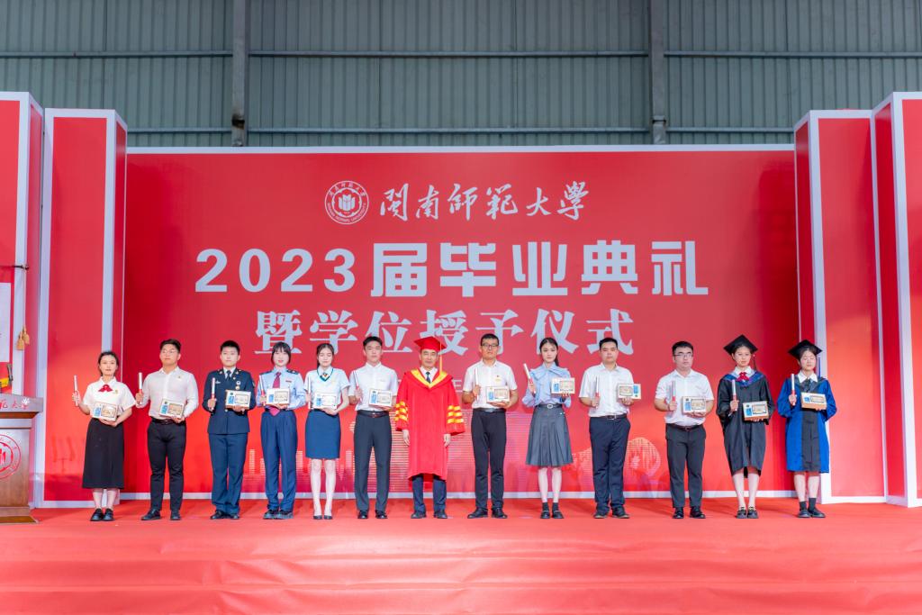 上午8點(diǎn),莊嚴(yán)的國(guó)歌聲響起,典禮正式拉開(kāi)帷幕。校黨委常委、副校長(zhǎng)張龍海宣讀獲得博士學(xué)位、碩士學(xué)位、學(xué)士學(xué)位人員名單和2023屆優(yōu)秀畢業(yè)生表彰決定。今年,學(xué)校共有682名研究生獲得博士、碩士學(xué)位,4603名本科生獲得學(xué)士學(xué)位,他們將接過(guò)時(shí)代的接力棒,奔向各自人生的下一趟旅途,書(shū)寫(xiě)人生新篇章。原創(chuàng)視頻《畢業(yè)禮物》與詩(shī)朗誦《六月驪歌》為畢業(yè)生送去母校的祝福,將別情與牽掛化為整裝出發(fā)的動(dòng)力。