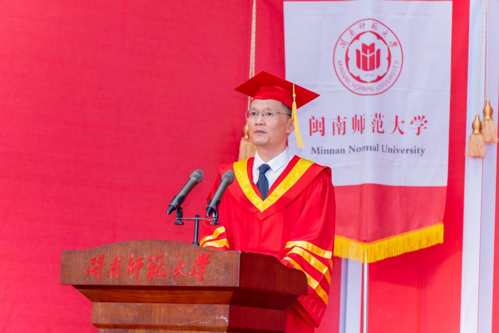 6月21日上午,閩南師范大學(xué)2023屆畢業(yè)典禮暨學(xué)位授予儀式在球類(lèi)館隆重舉行,并進(jìn)行網(wǎng)絡(luò)直播。校領(lǐng)導(dǎo)吳彬鏹、李順興、肖慶偉、何紹福、蔣一婷、林致遠(yuǎn)、張龍海、戴福康,校學(xué)位評(píng)定委員會(huì)委員,學(xué)校各機(jī)關(guān)、教輔單位主要負(fù)責(zé)人,各學(xué)院黨政領(lǐng)導(dǎo)、畢業(yè)班輔導(dǎo)員、部分學(xué)生家長(zhǎng)及3200多名畢業(yè)生參加典禮,畢業(yè)典禮由校黨委常委、副校長(zhǎng)林致遠(yuǎn)主持。