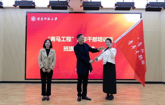校黨委書記、校長李順興為“青馬工程”青年干部培訓(xùn)班授旗