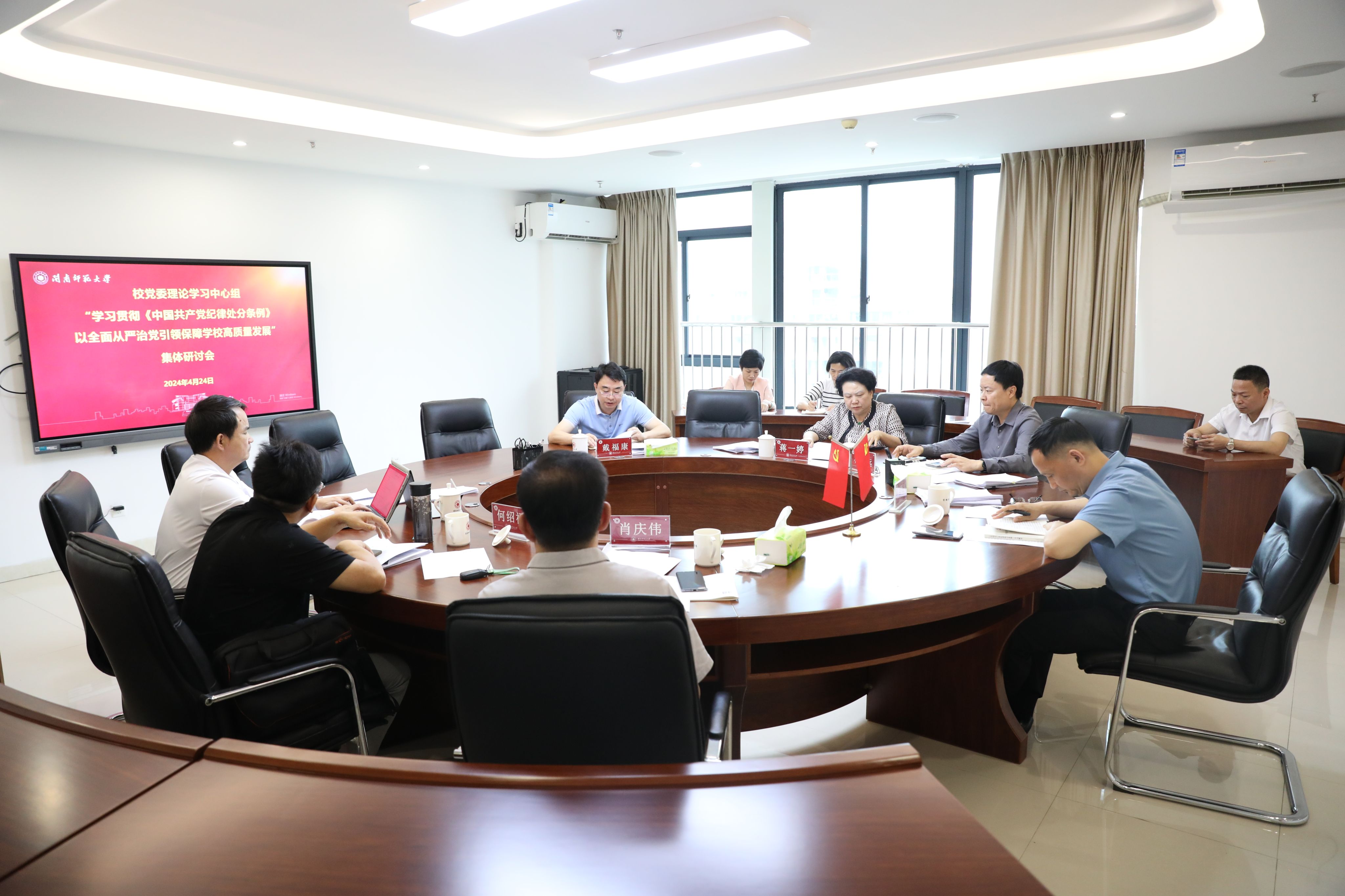 4月24日上午,校黨委理論學習中心組召開學習會,專題學習新修訂的《中國共產黨紀律處分條例》,并圍繞“學習貫徹《中國共產黨紀律處分條例》,以全面從嚴治黨引領保障學校高質量發展”開展集體研討。校黨委理論學習中心組成員、學習秘書參加。學習會由校黨委書記、校長李順興主持。