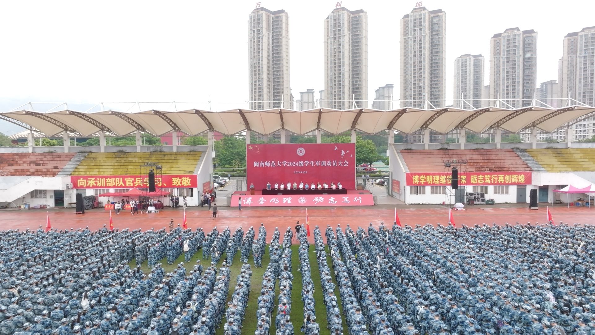 10月8日上午,我校在江濱校區(qū)西區(qū)田徑場(chǎng)舉行2024級(jí)學(xué)生軍訓(xùn)動(dòng)員大會(huì)。空軍某部領(lǐng)導(dǎo)陳正根,漳州軍分區(qū)領(lǐng)導(dǎo)林建輝,薌城區(qū)人民武裝部領(lǐng)導(dǎo)王銳,校黨委副書(shū)記林致遠(yuǎn),校黨委常委、副校長(zhǎng)張龍海出席大會(huì),學(xué)校相關(guān)部處和各學(xué)院有關(guān)領(lǐng)導(dǎo)、新生輔導(dǎo)員、2024級(jí)全體參訓(xùn)學(xué)生參加大會(huì)。動(dòng)員大會(huì)由學(xué)生處處長(zhǎng)、校人民武裝部部長(zhǎng)蔡斌主持。